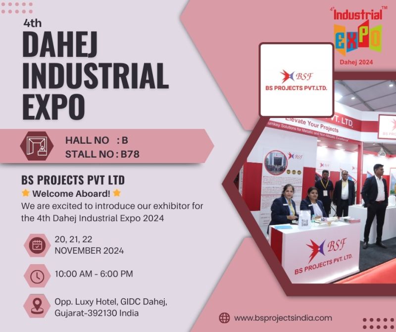 "BS Projects Private Limited, a leading manufacturer of FRP (GRP) products such as FRP tanks, blowers, scrubbers, pipes & fittings, GRP stacks, and sheets, is proud to announce its participation in Dahej Industrial Expo 2025".
